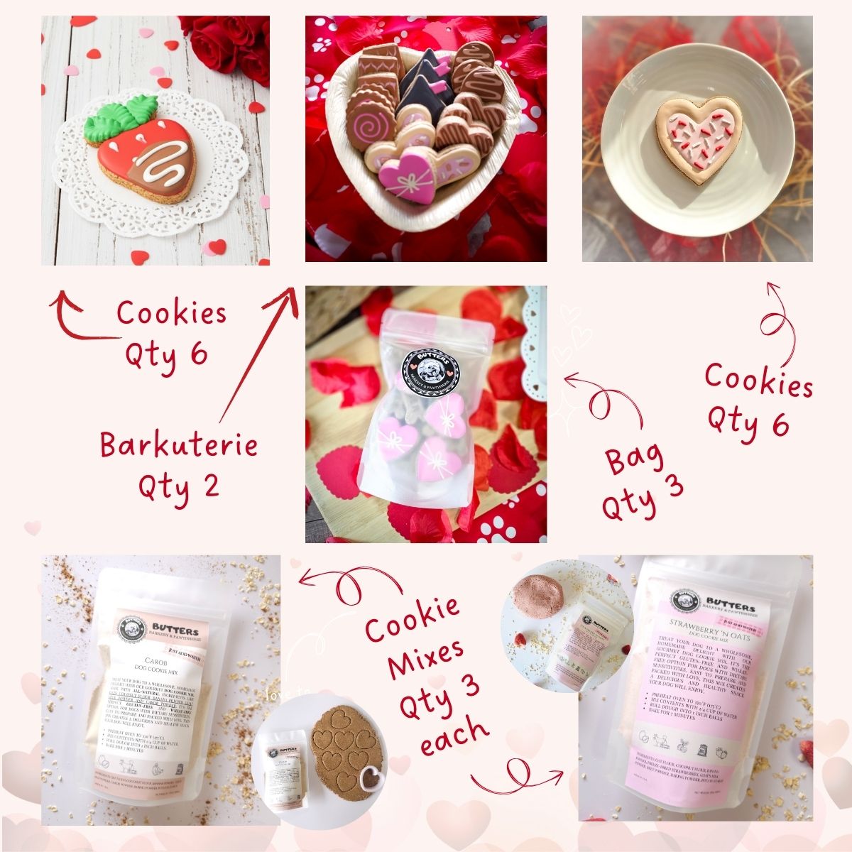 Qty 3 - Heart gift cookie bags (Mix of all natural bone shaped cookies and decorated mini heart gift cookies)